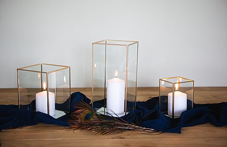 Note: Tables must be delivered and setup. All candles must be contained within votives or holders, to protect the table top.