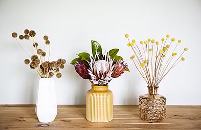 We have a range of vases to complement any aisle entrance or table style, including ceramic, bohemian brass, cut crystal and rustic glassware. From $3.00.